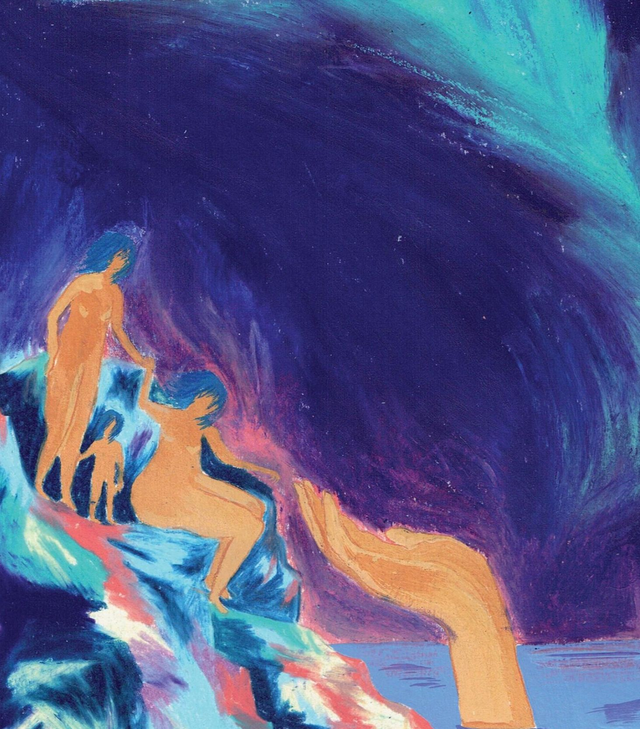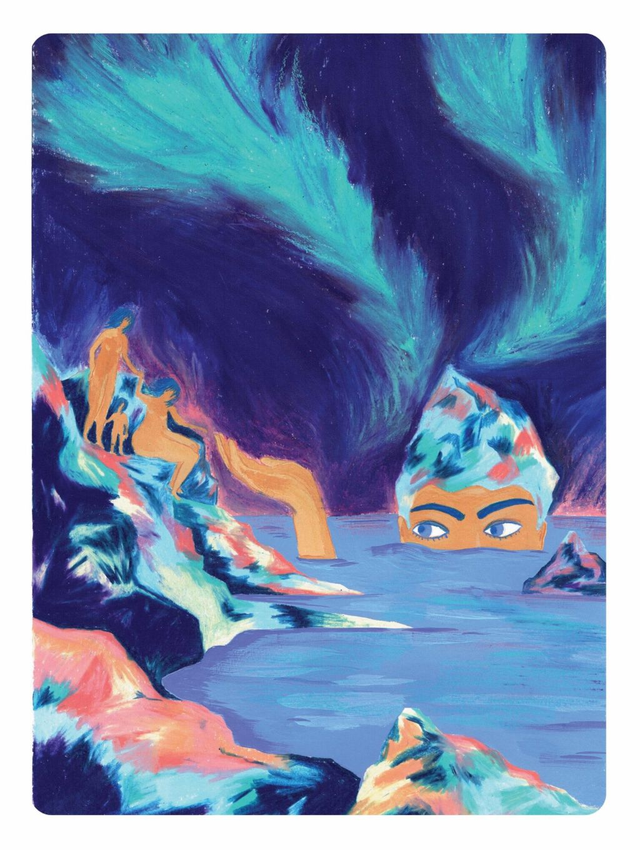 Reproduction d'une illustration réalisée à la gouache et aux pastels.
