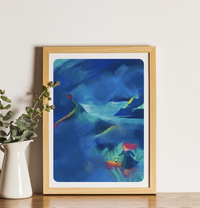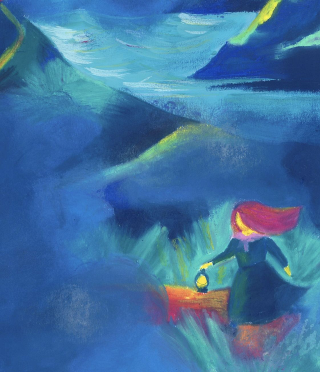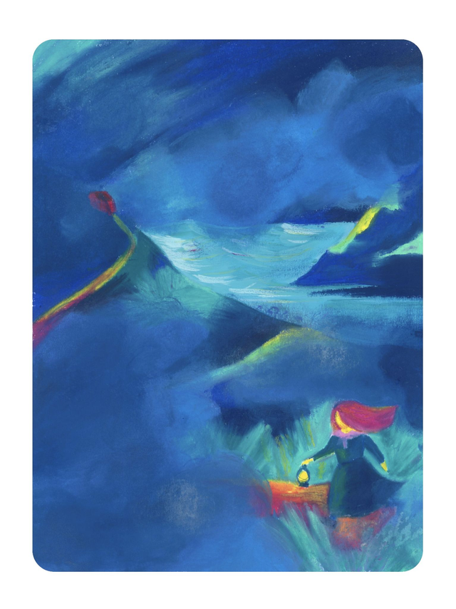 Reproduction d'une illustration réalisée à la gouache et aux pastels à l’huile.