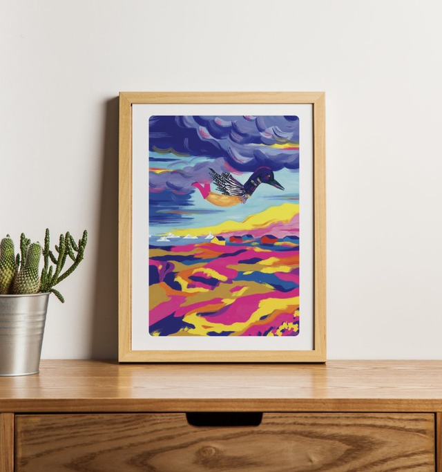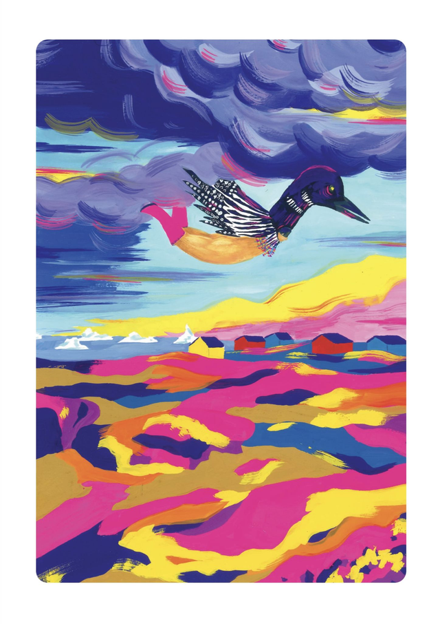 Reproduction d'une illustration réalisée à la gouache. Inspirée des légendes récoltées lors d’une résidence artistique au Groenland.